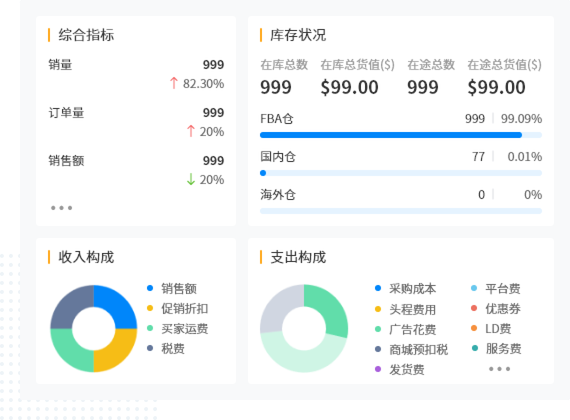 - 按店铺、ASIN、业务员等多种维度实时精确计算利润和业绩
