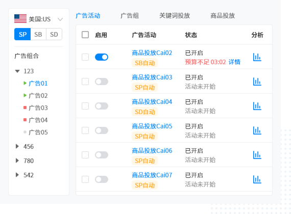 - 可批量管理SP、SB、SD等广告类型