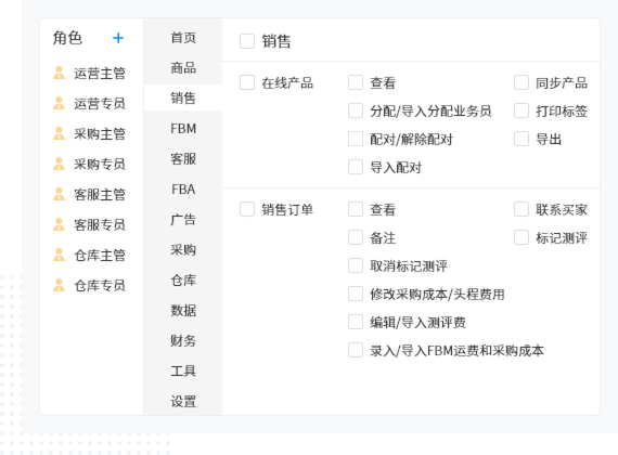 - 区分账号、店铺、模块、功能、数据的权限控制体系